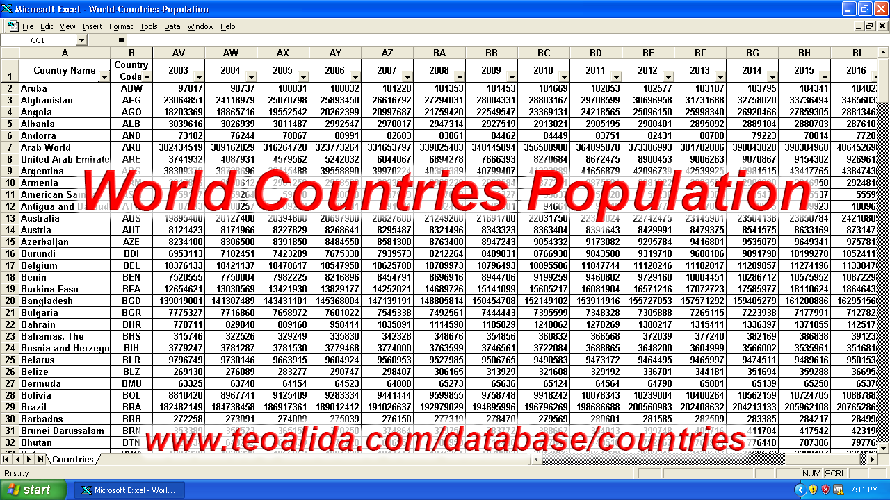 World countries databaseAre you looking for a database of countries in Excel format with their facts and figures, for research or to create a website? I made a database for you.