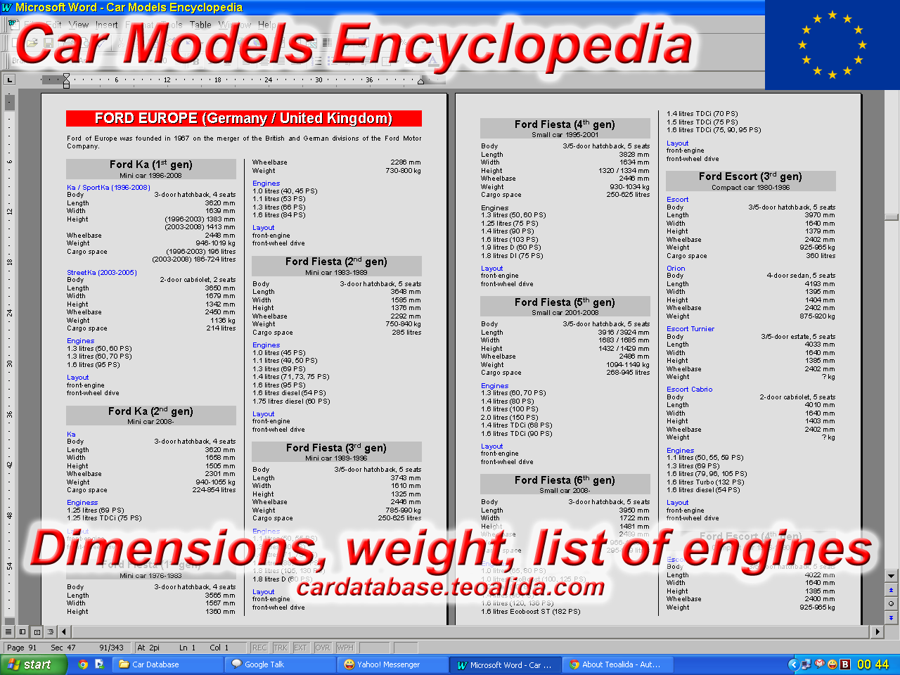 | Car Models Encyclopedia (Europe) | about €50 | DOC | 1680 | 360 pages | manual | 2005 | abandoned 2013 (low sales) |