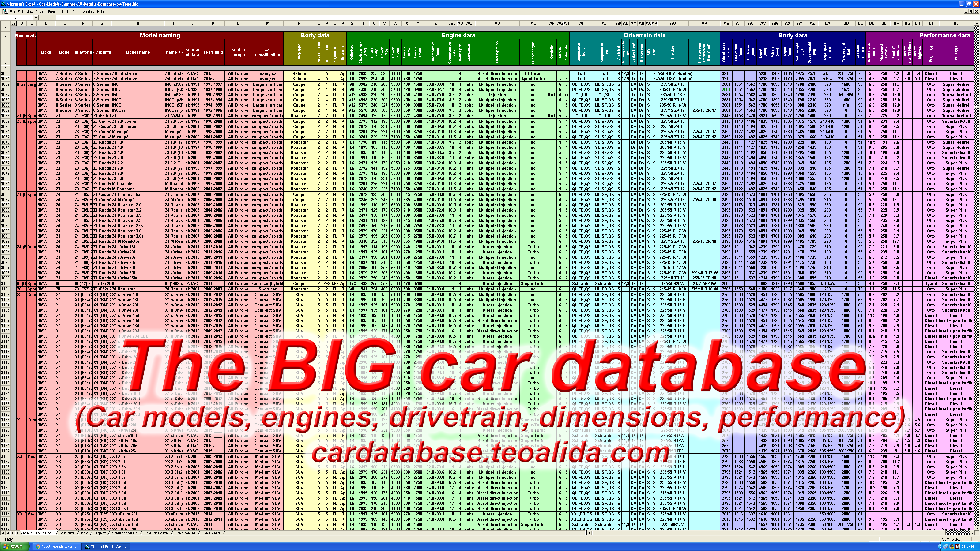 The hobby for cars started in 1999, since 2003 I use Excel to create an all-cars database, independently from the internet world (I connected to internet in 2005), manually entering data from the very reliable AutoKatalog car magazines from Germany (as seen in above video), making an original compilation that you cannot find anywhere else online (except on websites that purchased from me).