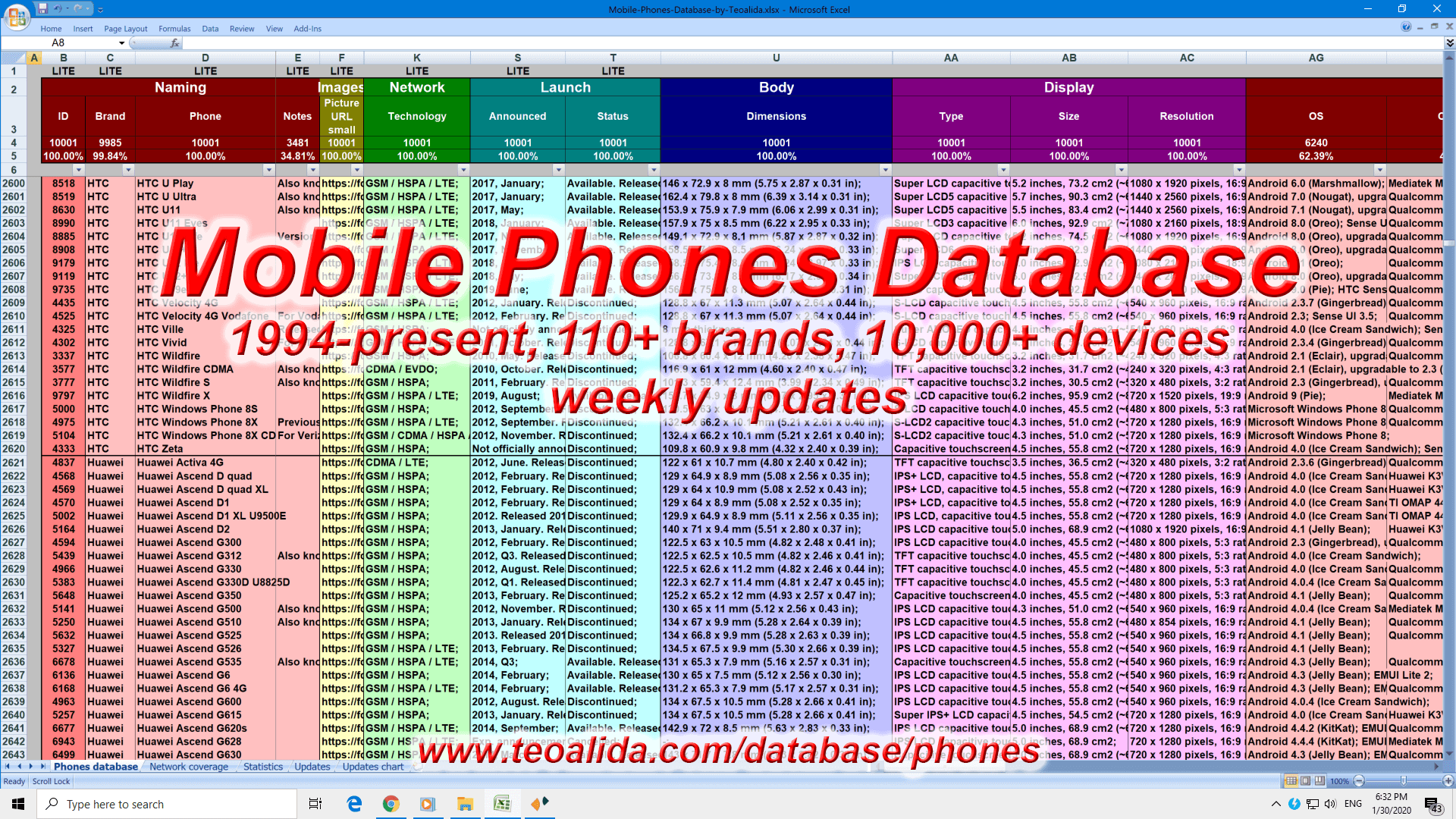 | Mobile phones database | about $200 | XLS | 8968 | 10000+ rows, 85 columns | scraping | Aug 2016 | every month (high sales) |