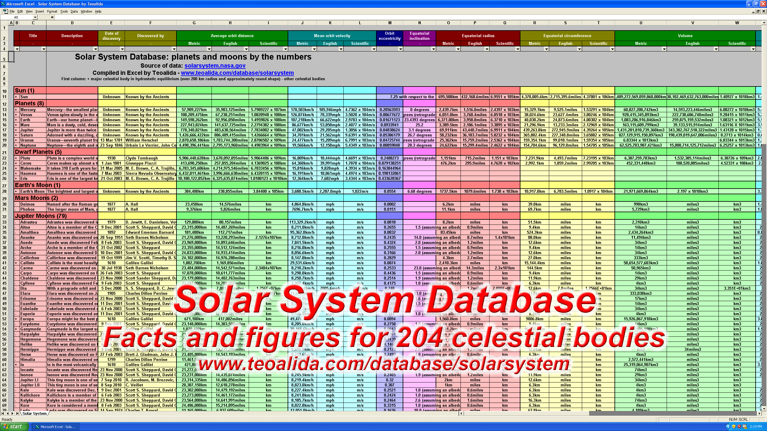 | Solar System Database | $20 | XLS | 213 | 204 rows, 42 columns | copy-paste | 2019 | no |